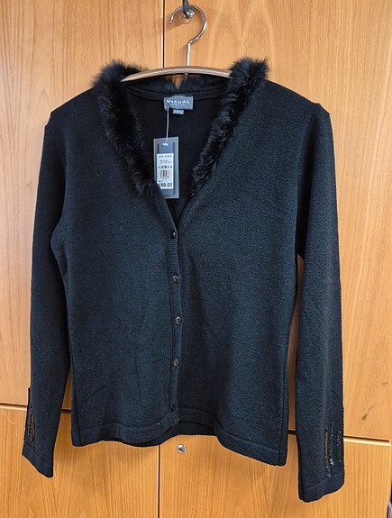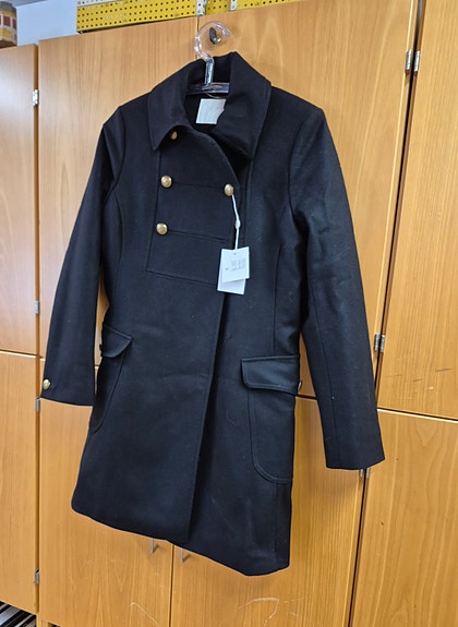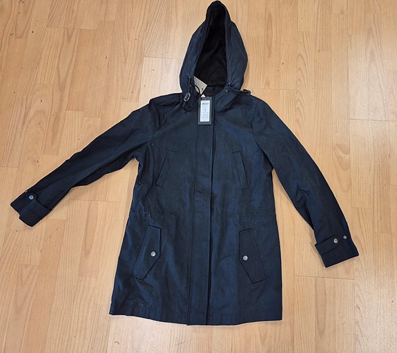 .Dame jakke m/ hætte - Længde foran 75 cm lynlås og trykknapper str. 38