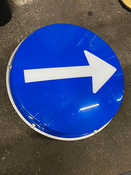 Lysskilt blå pil