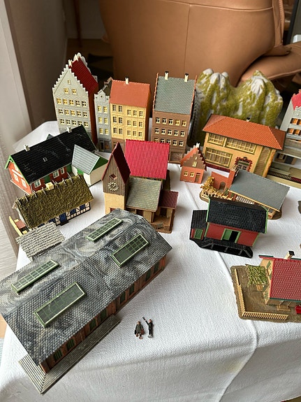 Huse og træer til togbane.