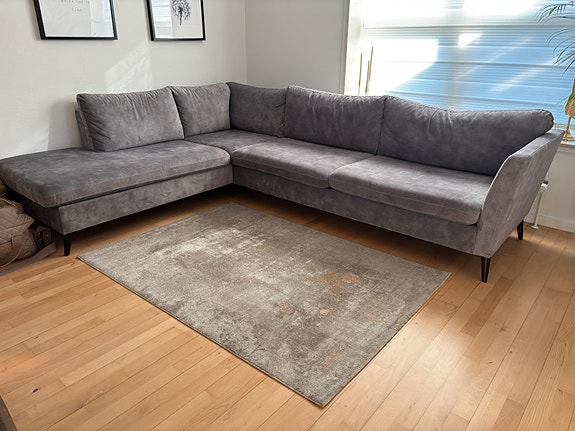 Sofa til salg - som ny, grå velour