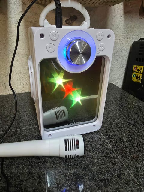 Karaokeanlæg med mikrofon