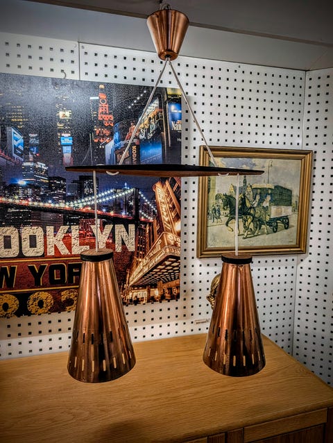 Kobber og teaktræ's lampe