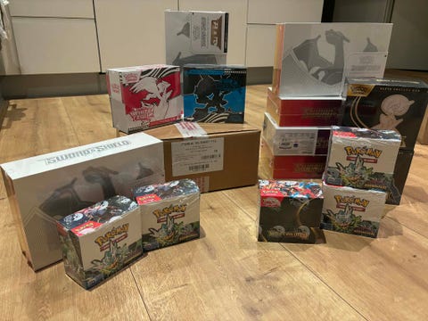 Stor sealed samling af Pokémon kort.
