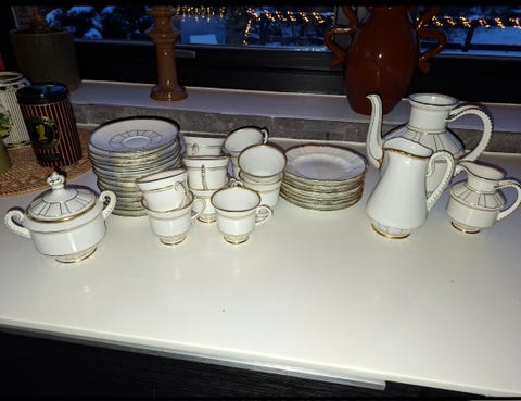 B & G kaffestel med guldkant
