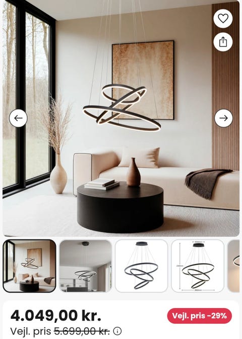 Moderne designlampe – næsten ny.