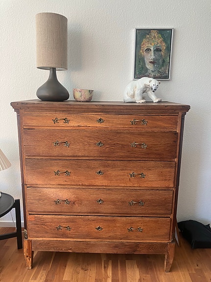 Kommode i træ med 5 skuffer