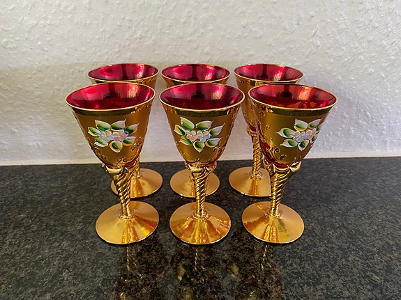Fint rød/guld glas