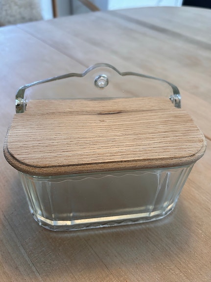 Saltkrukke i glas med trælåg