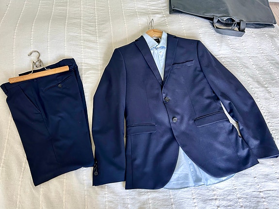 KUP! Selected Homme, navy jakkesæt + skjorte. str. 44 - klar til konfirmation