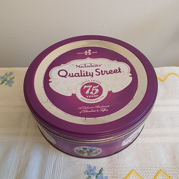 25 kr.Dåse fra Mackintosh's, Quality Dtreet, 75 års jubilæum. Ø. 18 cm.Rønde3 dageKøb nuLastbil i bevægelseFiks færdigFøj til favoritter.