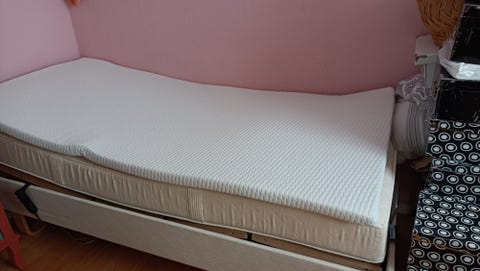 Mellemstor seng med topmaddras
