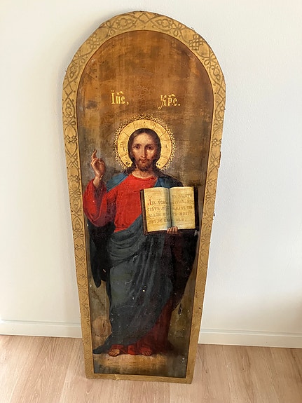 Stort Antikt Kristus Ikon 125 X 43