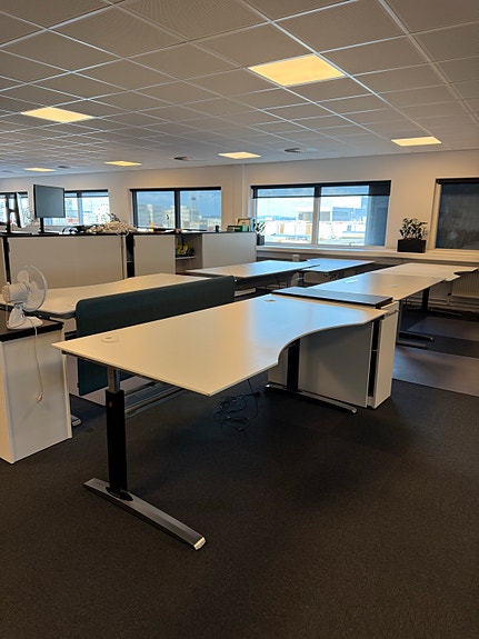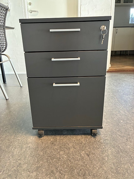 Kontormøbler i ask med sorte låger