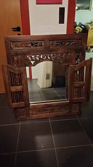 Smukt antikt træspejl