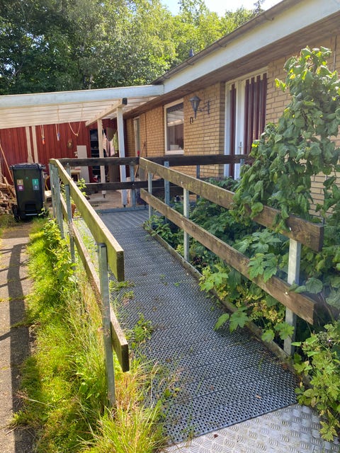 Rampe til indgangsparti med gelænder