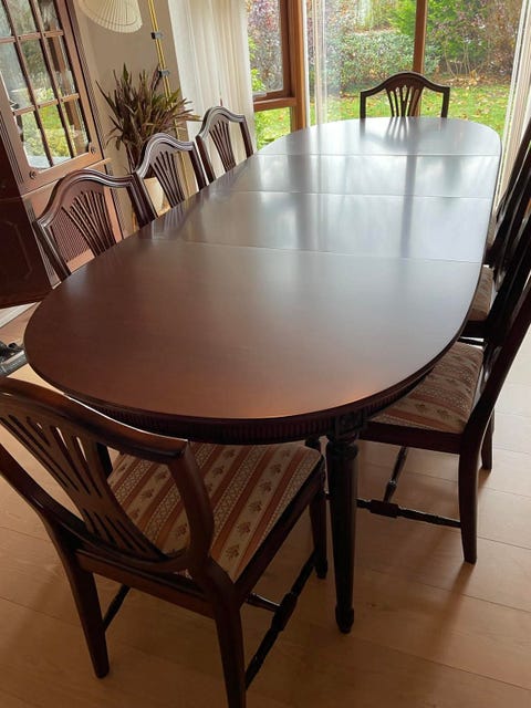 8 nye stole og nyt stor spisebord