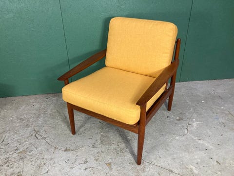 Ny polstret lænestol i teak