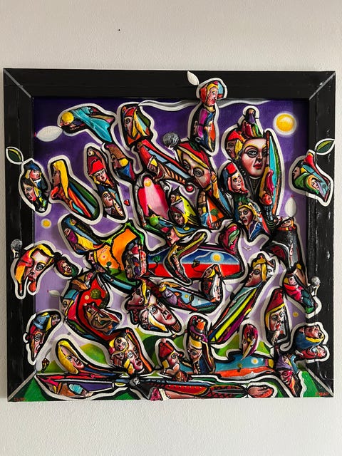 Mixed media relief on linen.