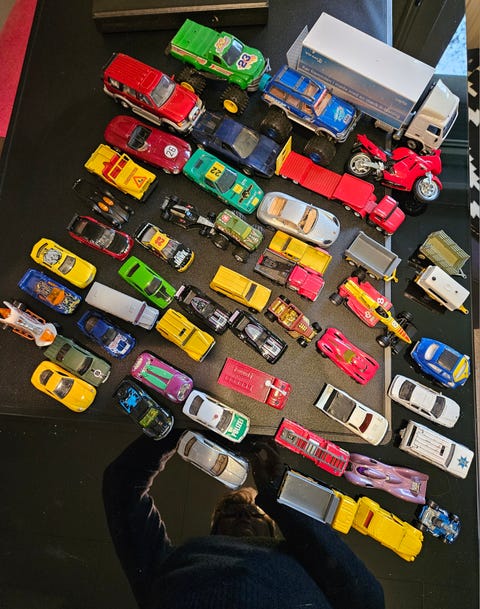 Små legetøjsbiler.