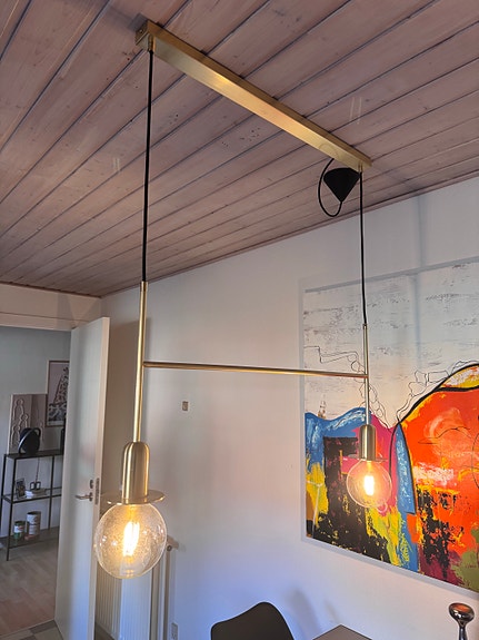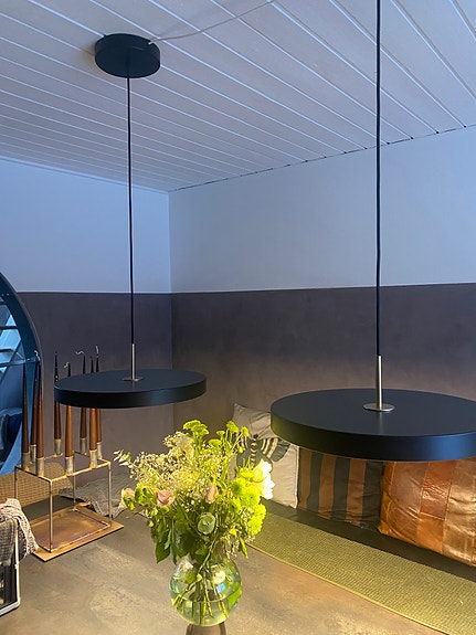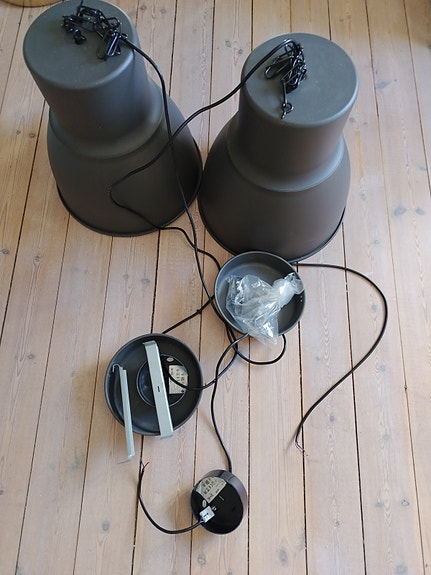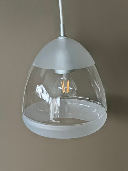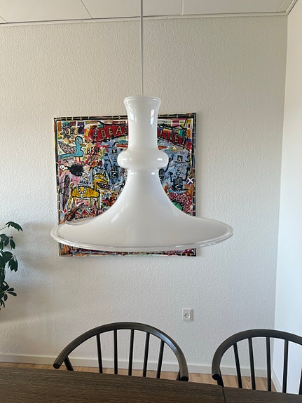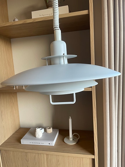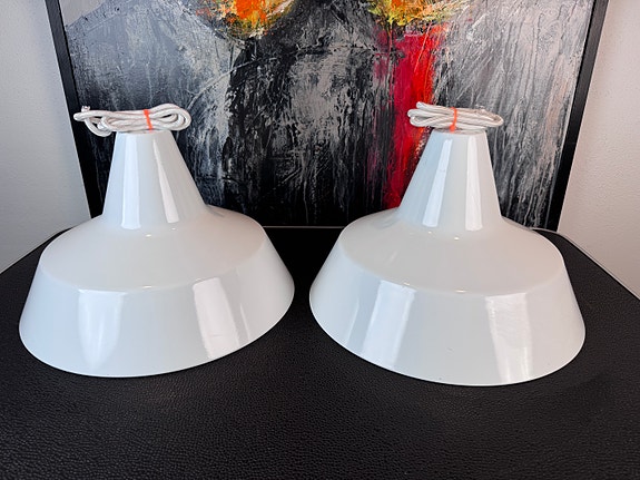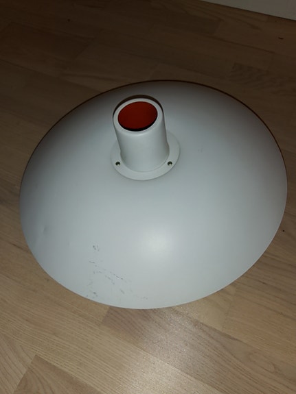 Poul Henningsen PH 4/3 pendel med hvide metal skærme. Lampen er fra 1990'erne