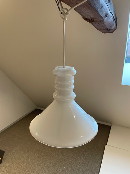 Loftlampe I rød/ hvidt glas