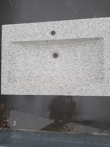 Stående håndvask i sten sort/grå