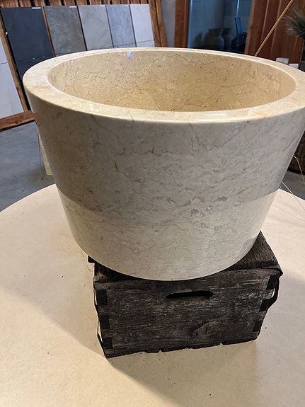 Rund håndvask i lys natursten marmor