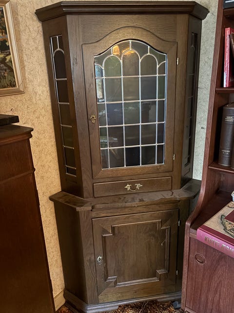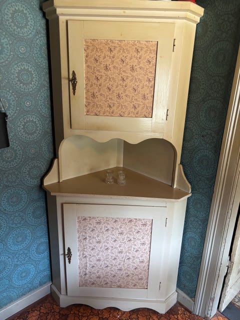 Gammelt vitrineskab.