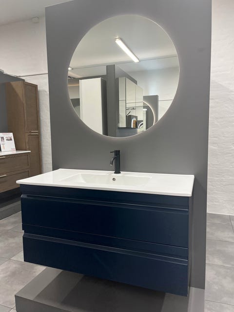 100 cm. BADMØBEL BLÅ FRA UDSTILLING