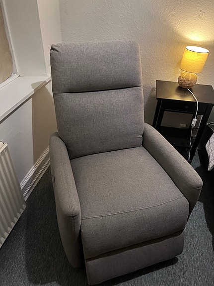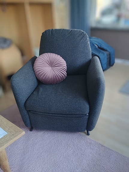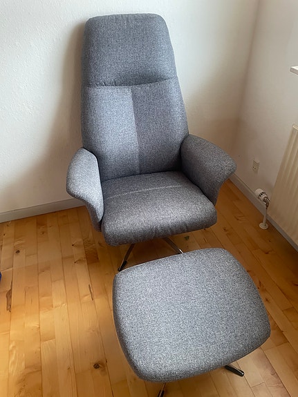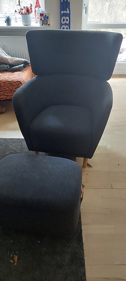 Grå lænestol med puf