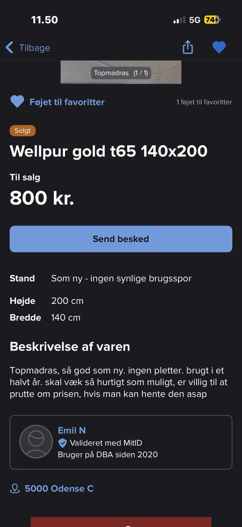 Næsten ubrugt boxmadras