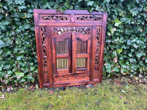 Træspejl med udskårne døre