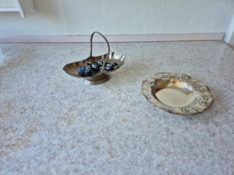 Fade, skåle i sølv plet