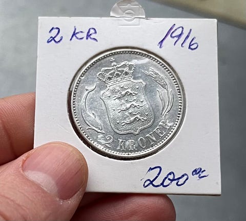 Danmark 2 Kroner Mønt 1916