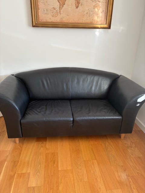 2 personers sofa i sort skind