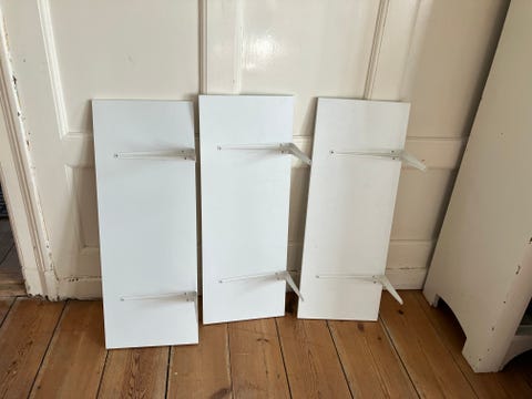 Hvid væghylde med beslag