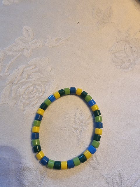 Armbånd med plastperler.