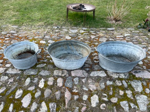 Gamle zink-baljer