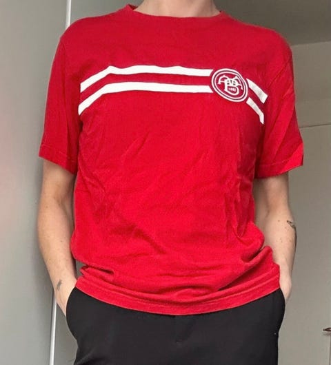 Karen by Simonsen smuk lyserød t-shirt str. S med stort K by S mønster foran
