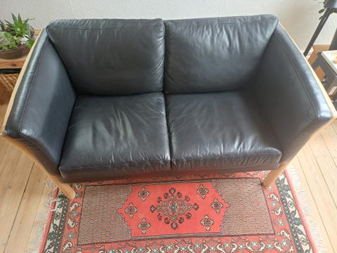 To personers sort lædersofa.