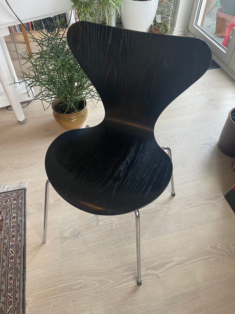 Arne Jacobsen 3207 Syver Armstole – Nypolstret i Cognac Læder & Sort Stel 7er