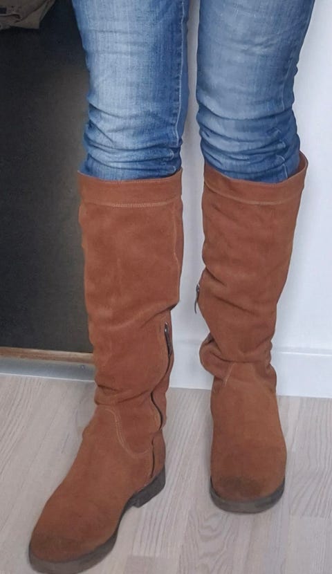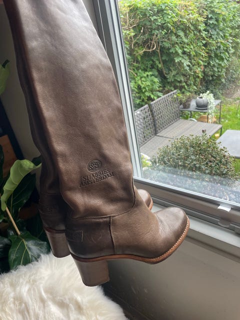 Valentino Garavani – Ubrugte sorte langskaftede læderstøvler med gyldne nitter