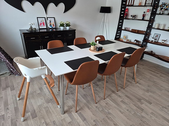Hvidt spisebord med stålben