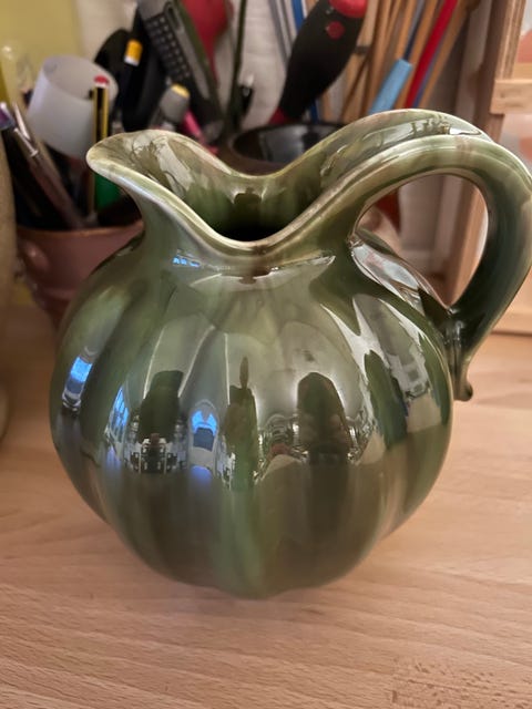 Grøn keramisk kande med hank