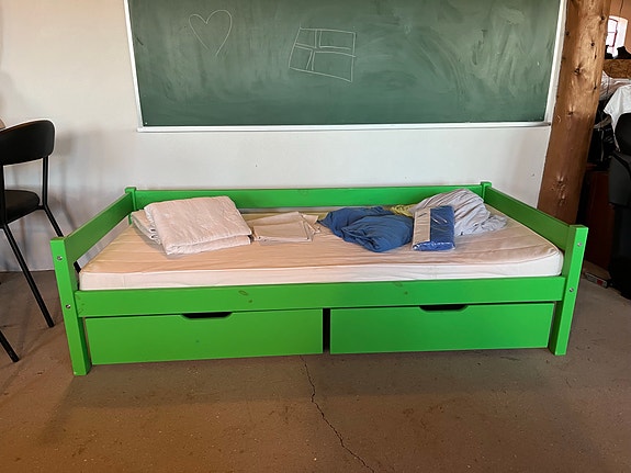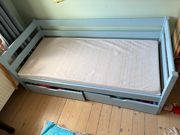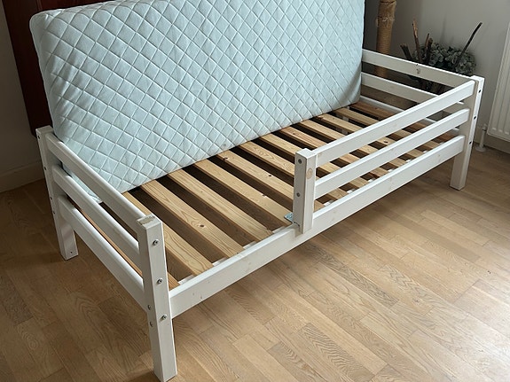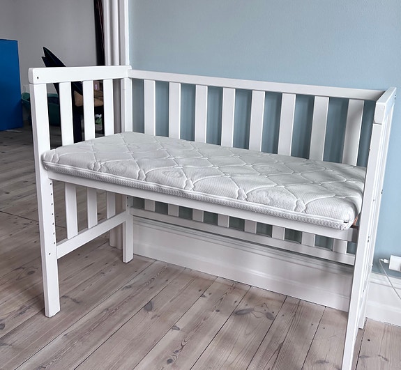 Ofte er barnets første seng en vugge, mens der først senere bliver købt en tremmeseng eller babyseng. En brugt tremmeseng kan være tilstrækkelig for en baby og et lille barn. Når du læser annonce(r), skal du være opmærksom på, om tremmesengen har en justerbar bund. En udtræksseng til børn er et godt køb, når barnet bliver større, for den kan bruges i flere år. Mange børn bevæger sig rundt i søvne, så det er godt, at sengen har kanter.
