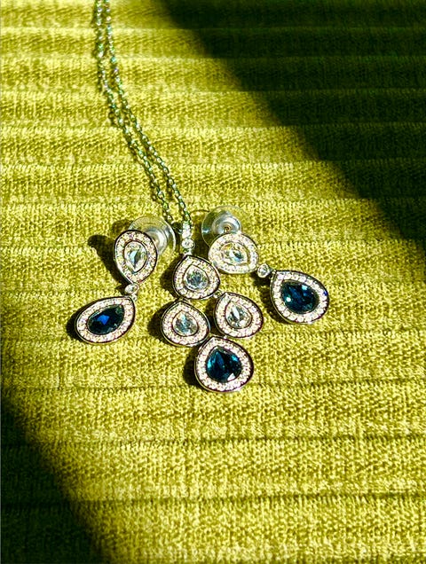 Et smykkesæt inkluderer ofte en halskæde og øreringe, og muligvis også et armbånd eller en ring. Delene i et smykkesæt passer naturligvis sammen og giver dit outfit et komplet look. Tjek DBA's 1.957 annonce(r) og se, om du kan finde det perfekte smykkesæt.