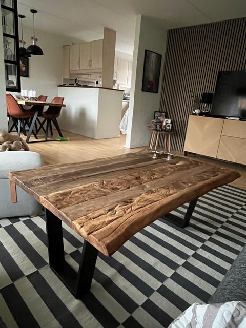 Stort rustikt træ sofabord