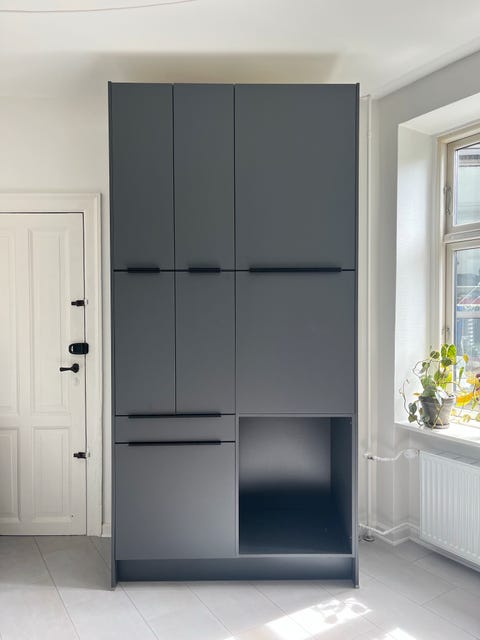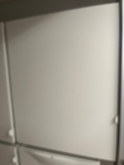 hvidt laminat skab med låger.