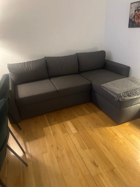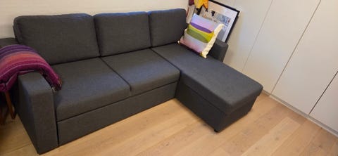 Mørke grå sovesofa med chaiselong