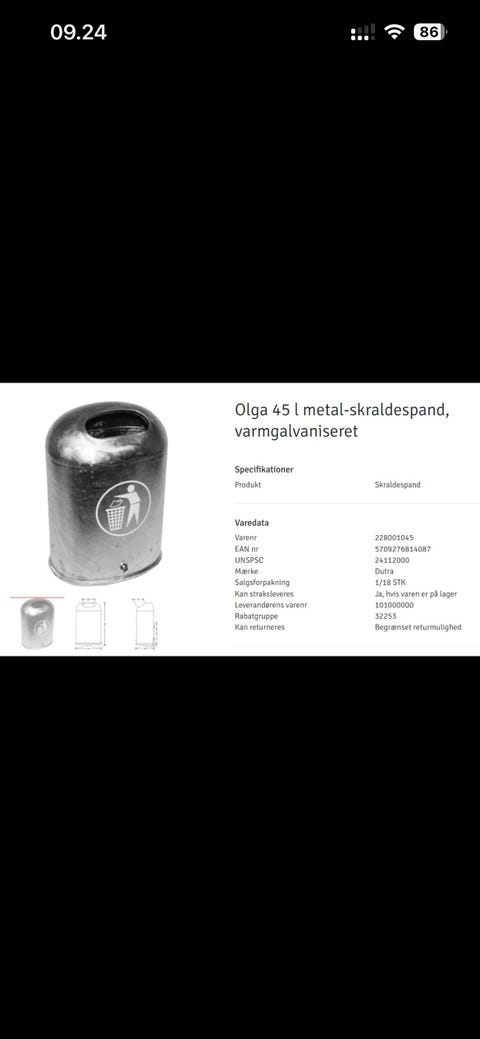 Helt ny 45L varmgalv. skraldespand